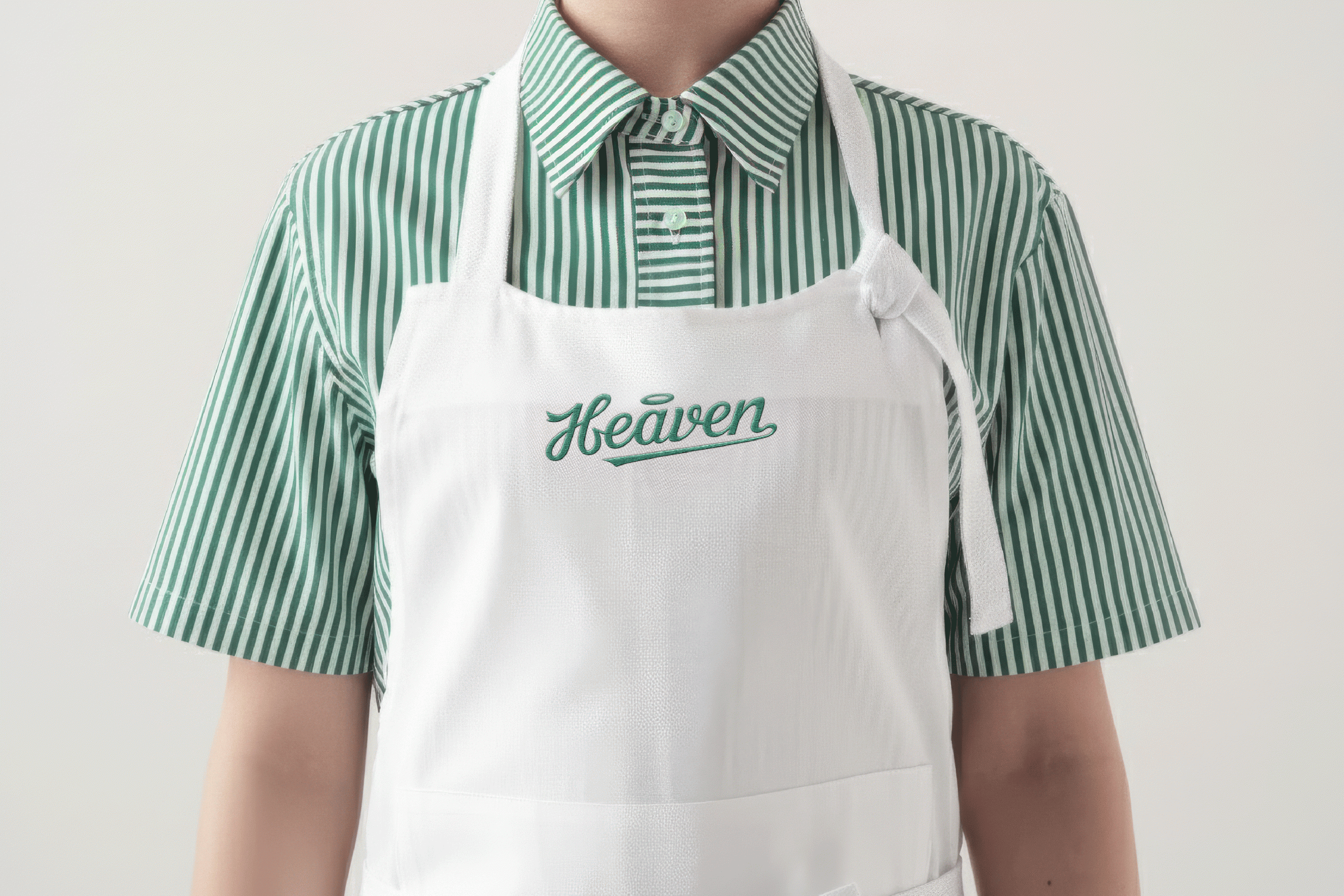 Biểu tượng Heaven lấy cảm hứng từ bông hoa cài áo đầu bếp, tượng trưng cho tay nghề và sự tinh tế. Họa tiết thương hiệu kết hợp đường kẻ thanh lịch cùng sắc xanh olive cổ điển, thể hiện sự cân bằng giữa hiện đại và truyền thống.